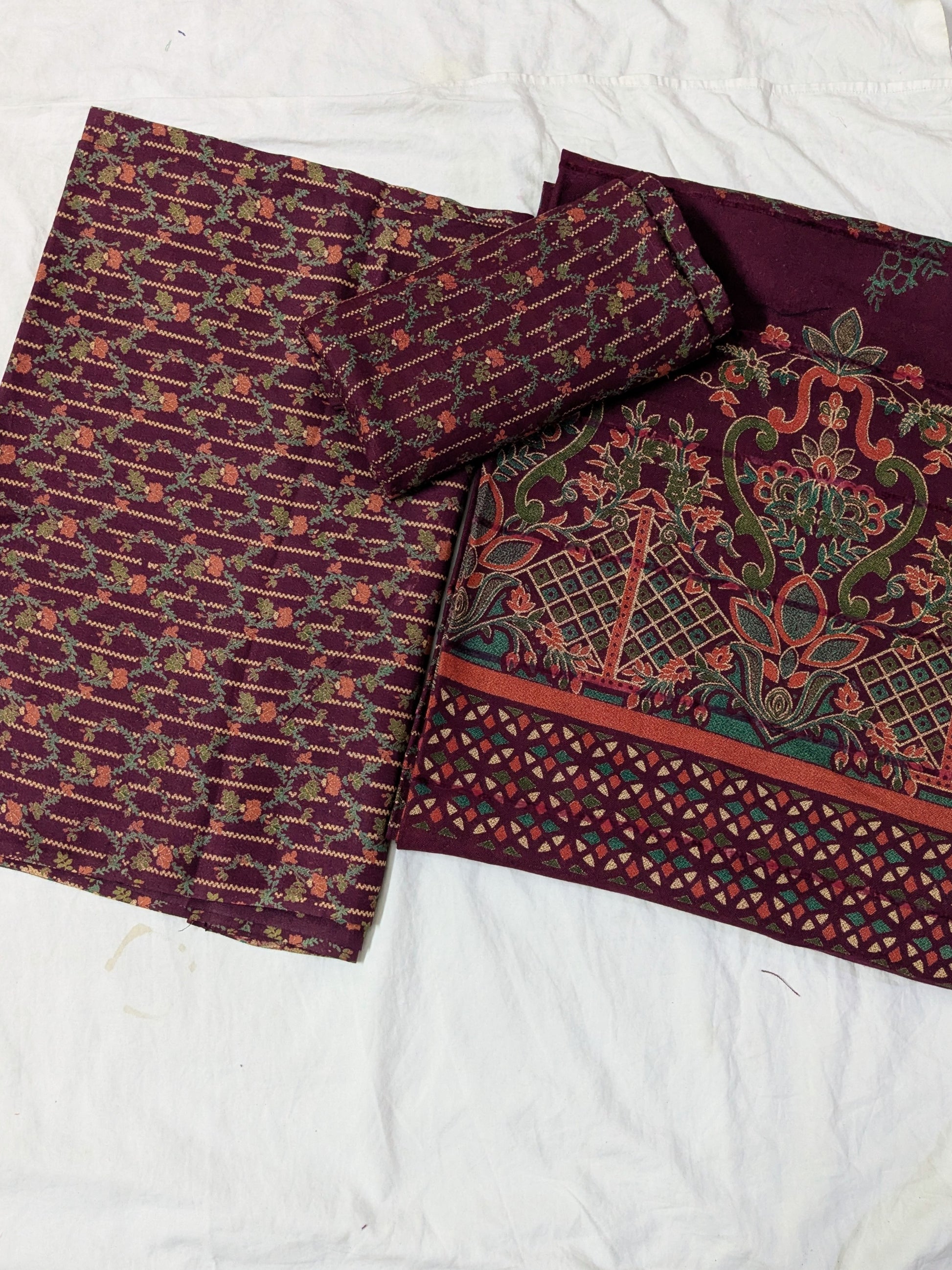 🧣 Shawl: 2.50 yards printed wool with Velvet Lining — warm, luxurious & classy